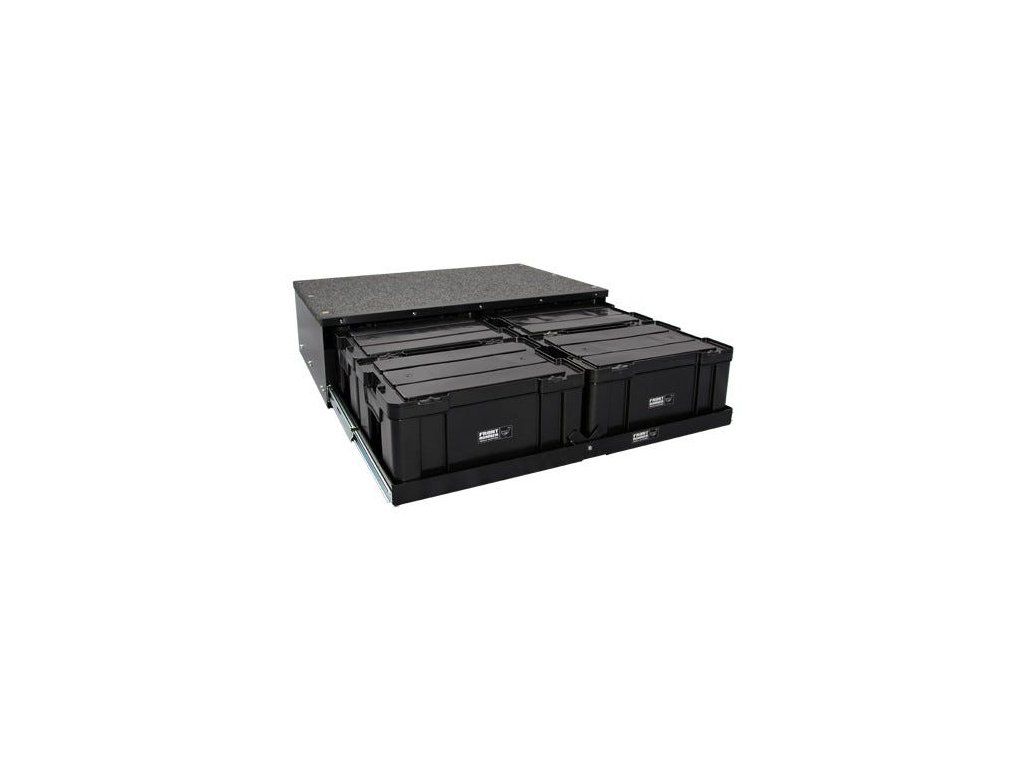 Systém 4 Cub Box Drawer / Wide lze snadno nainstalovat. V závislosti na typu vašeho vozidla může být vyžadováno vrtání.