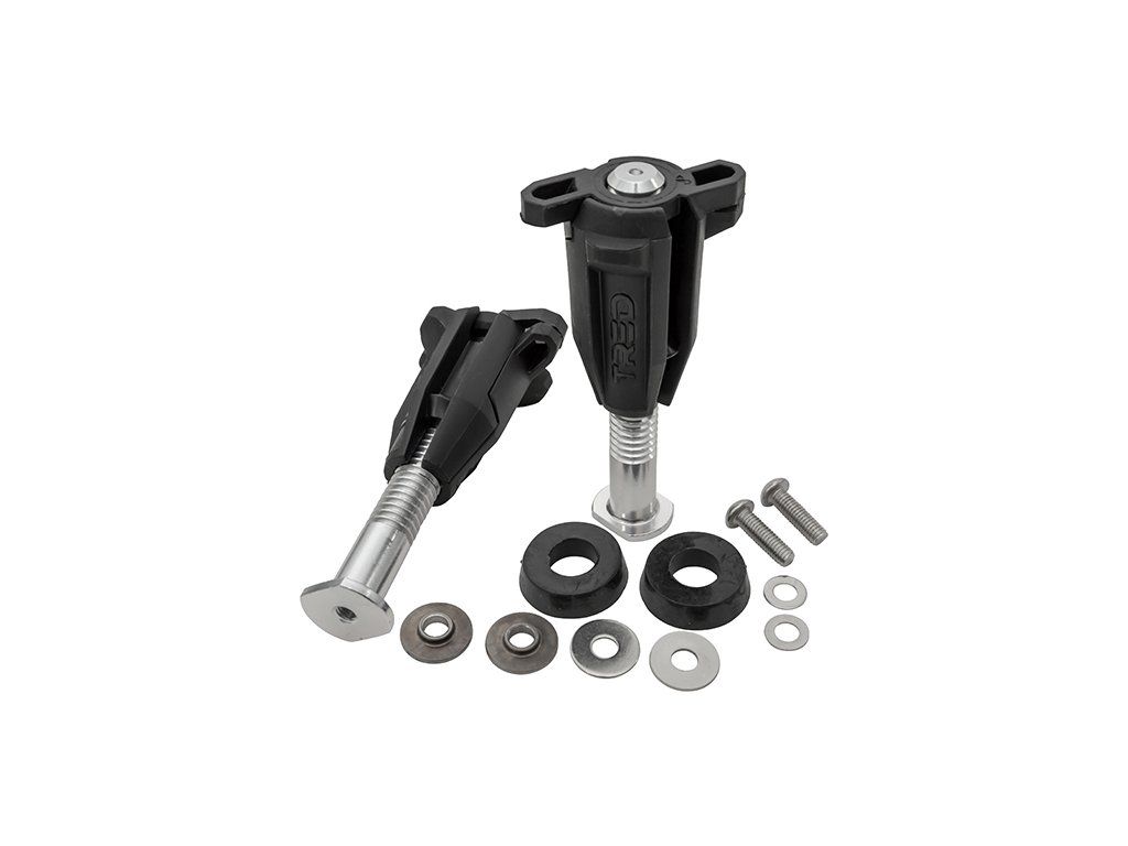 Čepy jsou uzamykatelné visacím zámkem, takže desky můžete bezpečně zajistit proti odcizení. Výrobce doporučuje visací zámek 30 mm s třmenem 5 mm. Díky konstrukci lze uchytit až čtyři vyprošťovací desky TRED (modely GT, HD nebo PRO).