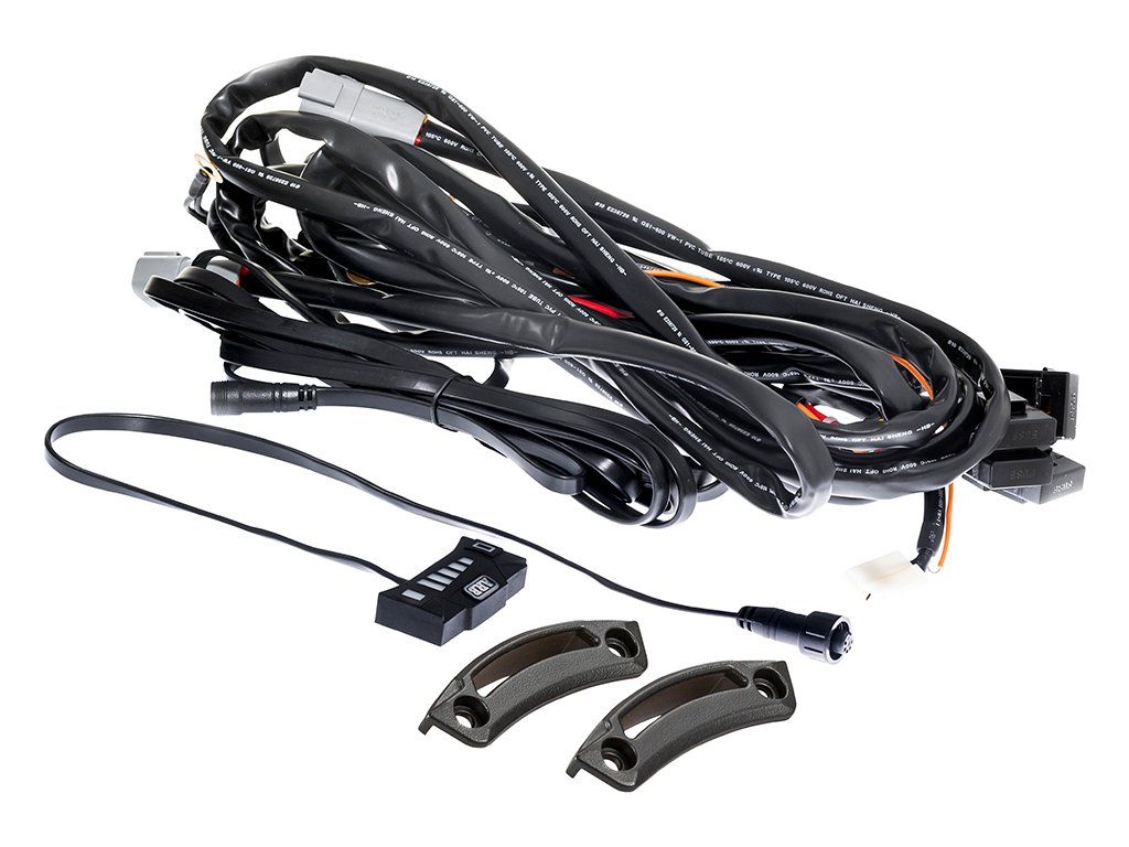 Součástí sady je kabeláž s dotykovým ovladačem (stmívačem), který umožňuje rychlé ovládání bez nutnosti dlouhého hledání tlačítek. Pro terénní režim nabízí přednastavené úrovně výkonu.