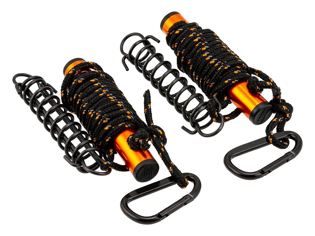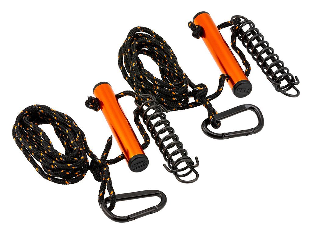 Sada dvou napínacích lan určená pro kotvení markýz, přístřešků a dalšího kempingového vybavení. Díky pružinovému napínacímu systému lano tlumí rázy při poryvech větru, lépe drží napnutí a pomáhá snižovat riziko vytažení kolíků ze země.