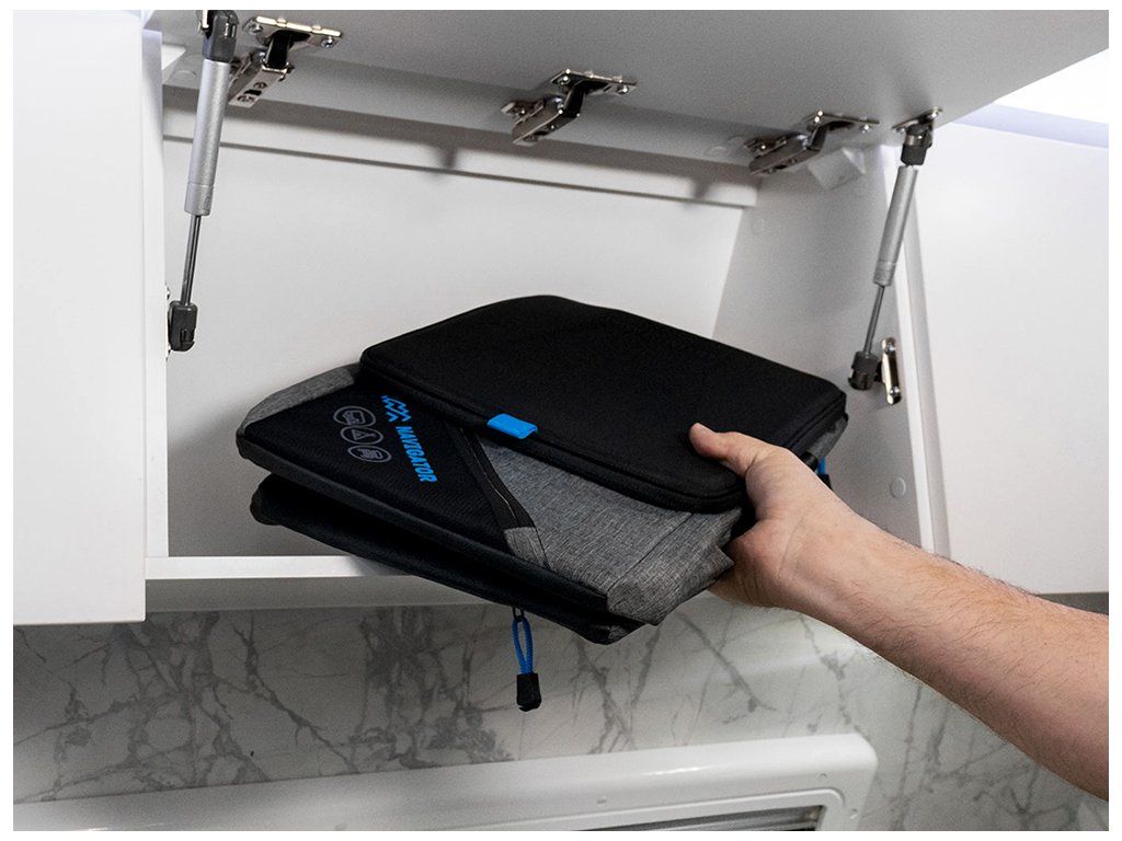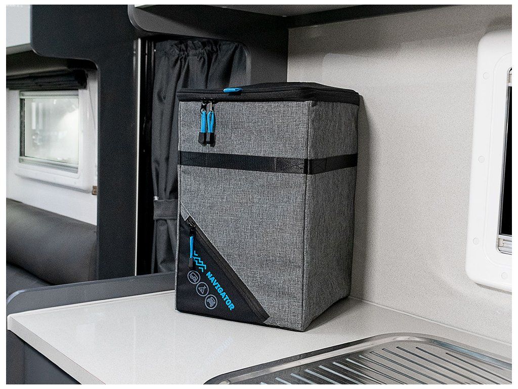 Navigator Mini-Bin Buddy je chytré řešení pro odpad v karavanu, obytném autě i v kempu. Díky tvrdému tvarovanému víku se zipem pomáhá udržet zápach uvnitř a zlepšuje hygienu v obytném prostoru i pod markýzou.