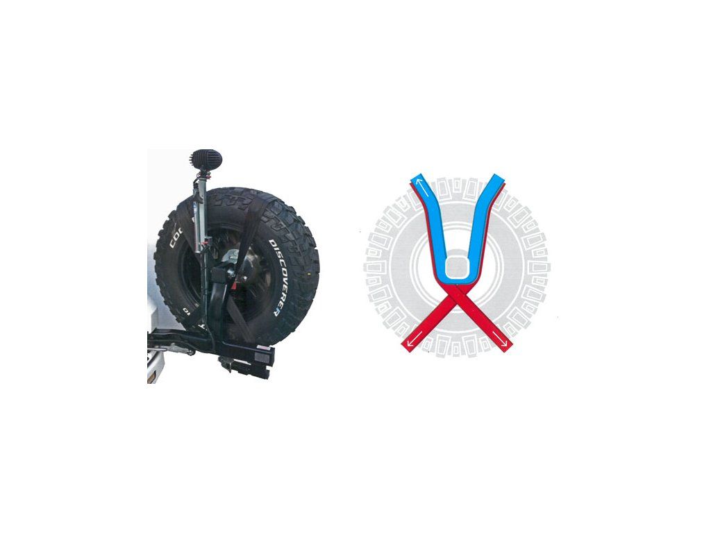 Uchycení je řešeno tříbodovým systémem, který drží tašku stabilně na rezervním kole. Je vhodná pro pneumatiky až do velikosti 35".
