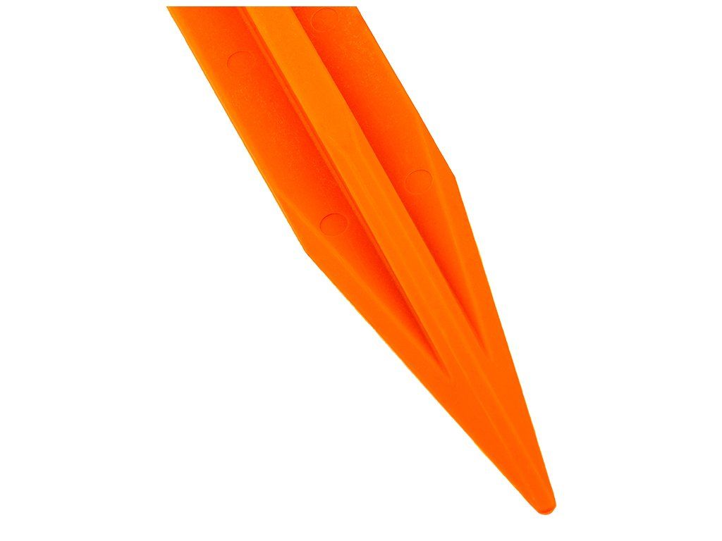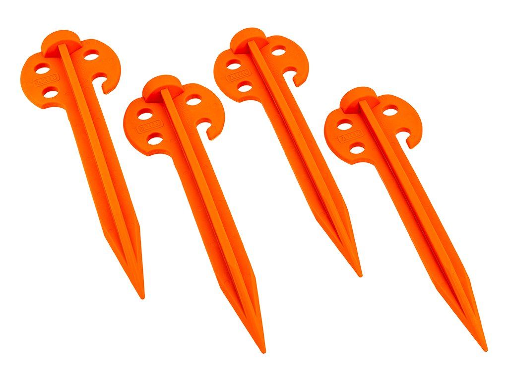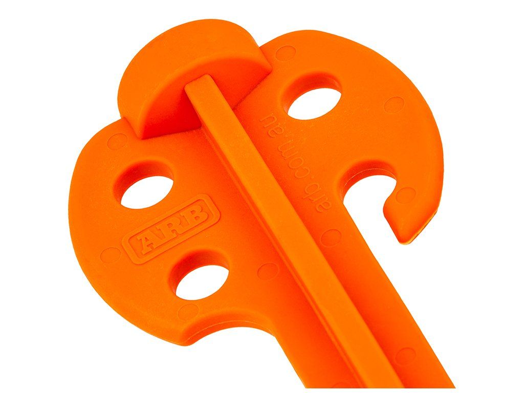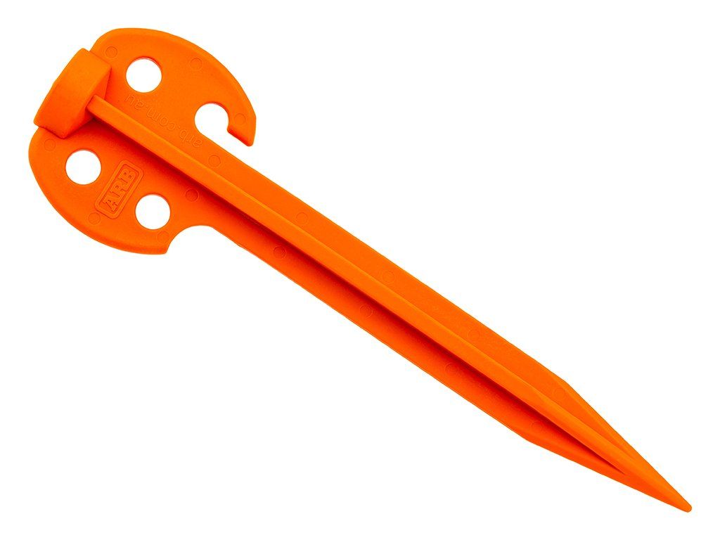 Kolíky jsou vyrobené z pevného polykarbonátu, který je odolný a zároveň lehký. Praktické jsou také vícebodové úchyty pro šňůry – snadno si zvolíte ideální úhel napnutí. A protože při balení se kolíky často ztrácí, ARB zvolilo výraznou oranžovou barvu, která je dobře vidět a snižuje riziko zakopnutí v kempu.