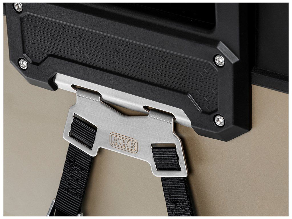 ARB Fridge Freezer Tie-Down Kit je originální upínací sada určená pro všechny lednice ARB Zero. Je navržená pro montáž na výsuvné pojezdy ARB, aby lednice při jízdě držela pevně na místě – v terénu, na rozbitých cestách i při prudším brzdění.
