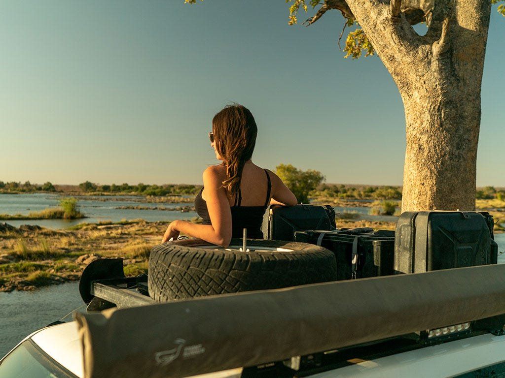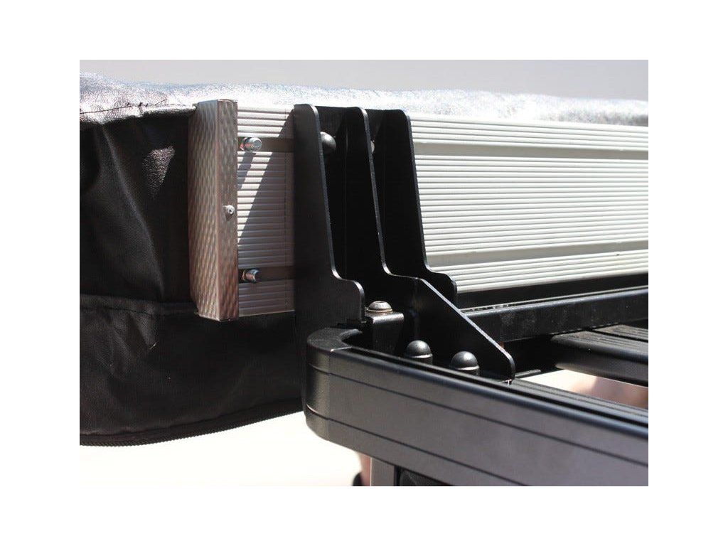 Tyto korozivzdorné držáky bezpečně připevní markýzu Manta Wing nebo Bat Wing k bočnímu profilu střešního nosiče Slimline II.
