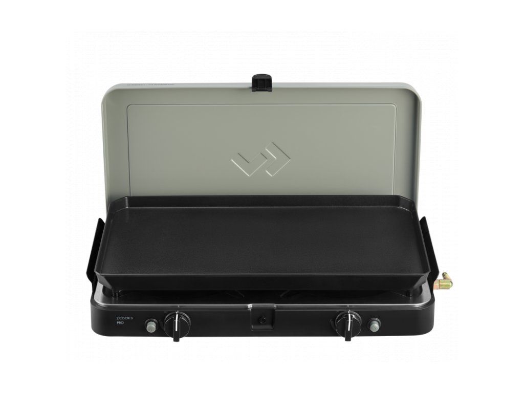 2 Cook 3 Pro Plancha je kompaktní a všestranný dvouhořákový vařič, který je ideální pro kempování, karavaning, pikniky i vaření na balkóně. Součástí setu je velká plancha grilovací deska, díky které připravíte rychle a pohodlně maso, ryby, zeleninu, palačinky i snídani typu vejce a slanina.