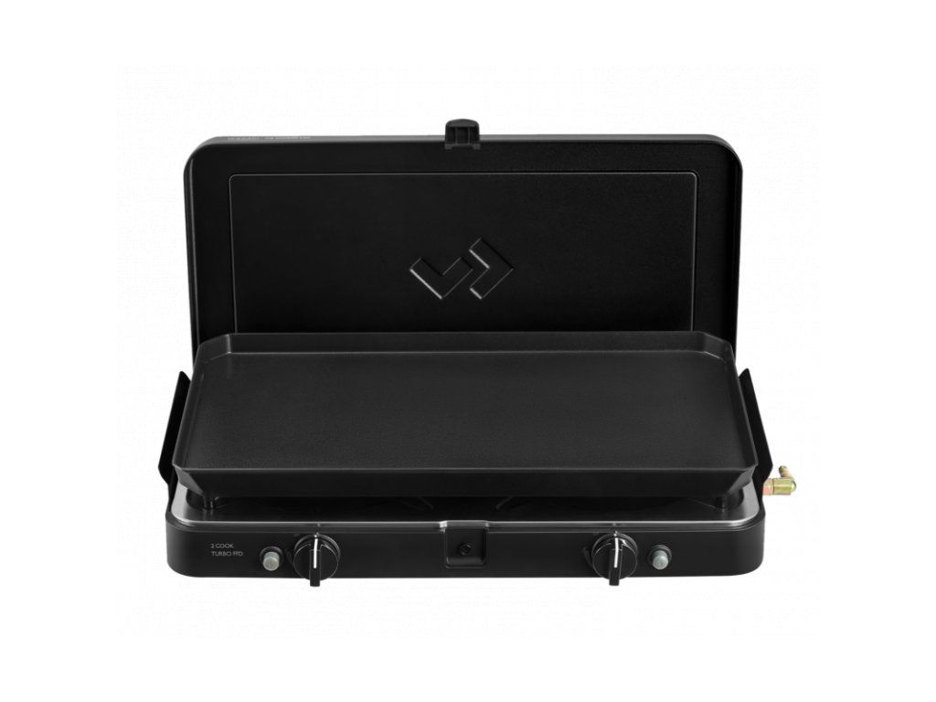 Vhodný doplněk pro každého karavanistu – dvouhořákový vařič s pojistkou FFD a velkou planchou GreenGrill pro pohodlné vaření i grilování na cestách.