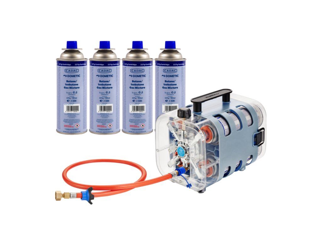 CADAC Quad Power Pak Set je promyšlené řešení pro všechny, kdo hledají lehkou a skladnou alternativu k doplnitelné plynové lahvi. Tento set kombinuje Quad Power Pak s 4× plynovou kartuší 227 g s bajonetovým připojením a je připraven k okamžitému použití.