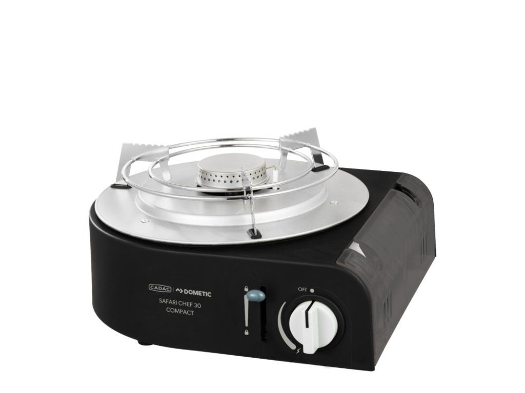 Safari Chef 30 Compact Lite je ultrakompaktní a velmi lehký plynový gril navržený pro outdoorové aktivity, krátké kempovací výjezdy a cestování nalehko. Funguje přímo na 227g plynovou kartuši – kartuši jednoduše vložíte do grilu, zajistíte páčkou a otočením ovládacího knoflíku můžete začít vařit nebo grilovat.