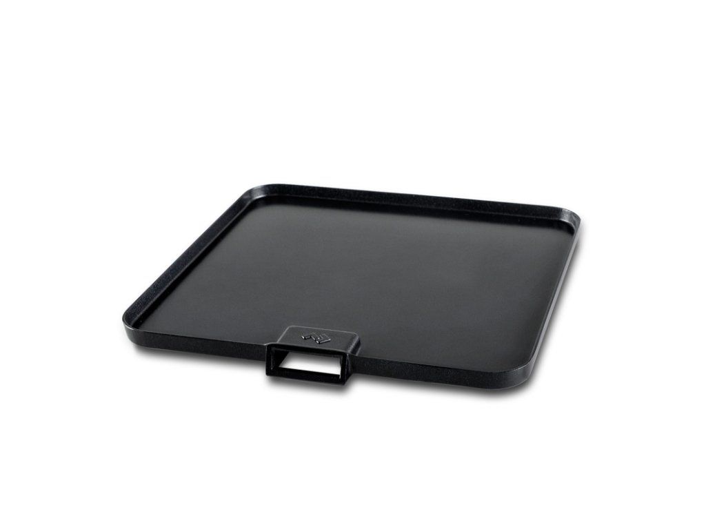 Plotna je vyrobená z lehkého hliníku a má keramický povrch GreenGrill, který je bez PFAS. Hladký povrch je ideální pro jídla, která potřebují rovnoměrný kontakt s plotnou – například restovaná zelenina a maso (stir-fry), palačinky, omelety nebo vejce a slanina.