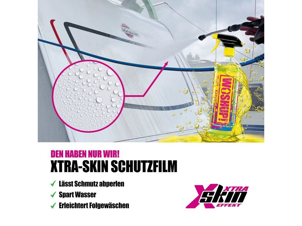 Unikátní Xtra Skin efekt vytváří na povrchu ochrannou vrstvu, která pomáhá omezit budoucí usazování nečistot. Díky tomu se vozidlo méně špiní a následné čištění bývá rychlejší a jednodušší.
