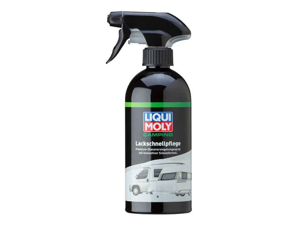 Camping Rychlá péče o lak je prémiový lesklý těsnicí prostředek s inovativním ochranným složením pro rychlou a bezvodou péči o lak. Bez námahy odstraňuje lehké nečistoty, jako je prach, otisky prstů nebo skvrny od vody, ze všech hladkých povrchů na obytných vozech, obytných nástavbách, karavanech i automobilech a dodává laku zářivý hluboký lesk.