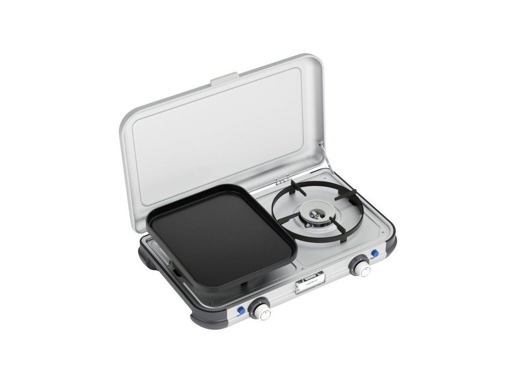 Camping Kitchen 2 GRILL & GO je praktický dvouvařič, který kombinuje klasické vaření s možností rychlého grilování. Díky 2 hořákům připravíte více jídel najednou – a když chcete změnu, jednoduše použijete vyjímatelný grilovací rošt a plancha desku. Ideální volba pro kempování, roadtripy i vaření venku u auta.