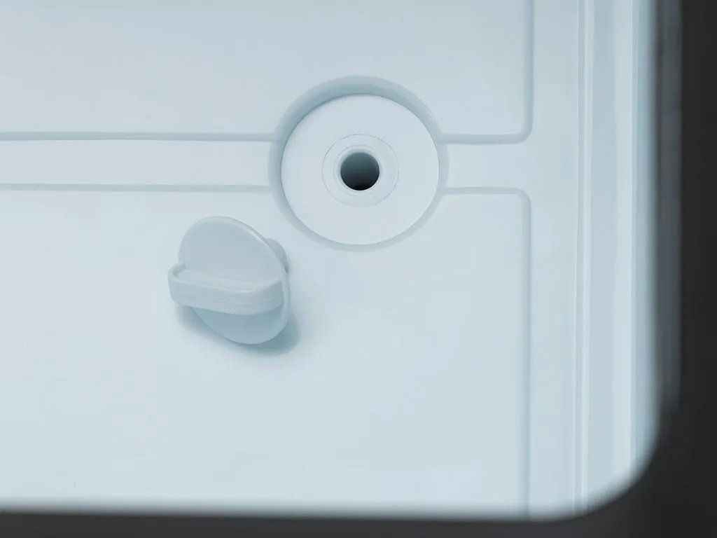 Vnější výbava zahrnuje samosklopná madla z hliníkové slitiny, odnímatelné víko s protiskluzovým povrchem, TPE těsnění pro perfektní uzavření víka a integrovaný otvírák na lahve.