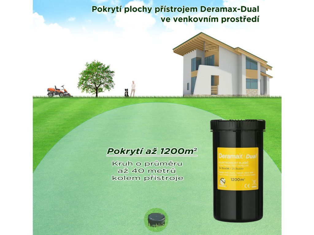 Jaký je rozsah účinnosti plašiče Deramax Dual?