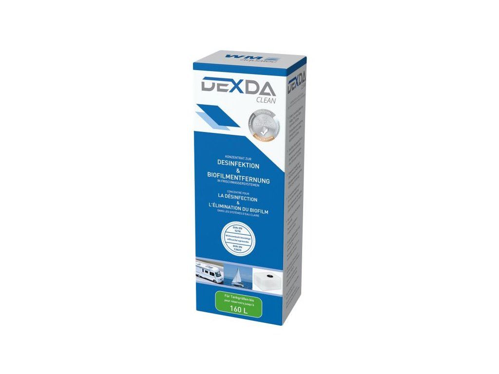 Dexda® Clean je určen pro spolehlivou dezinfekci systému čerstvé vody. Pomáhá odstraňovat bakteriální zbytky, plísně, viry, řasy, legionellu i biofilm a přispívá tak k lepšímu hygienickému stavu nádrže i celého vodního systému v karavanu, obytném voze nebo na lodi.