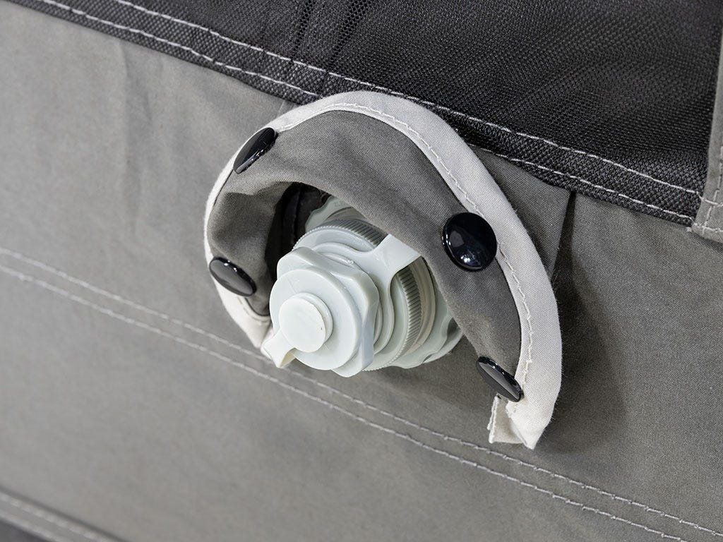 Integrovaná nafukovací matrace s odděleným vnějším ventilem pro maximální pohodlí.