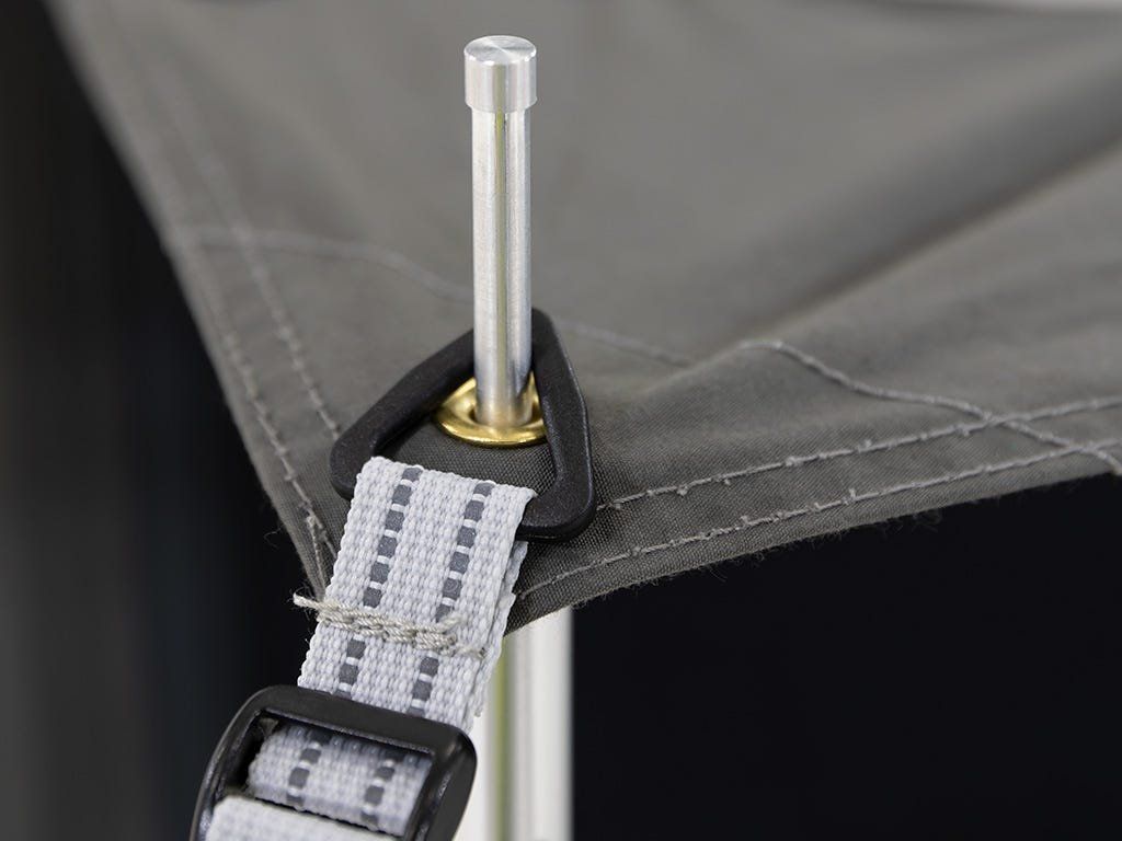 Pomocí integrovaných tyčí lze přeměnit přední vchod na přístřešek.
