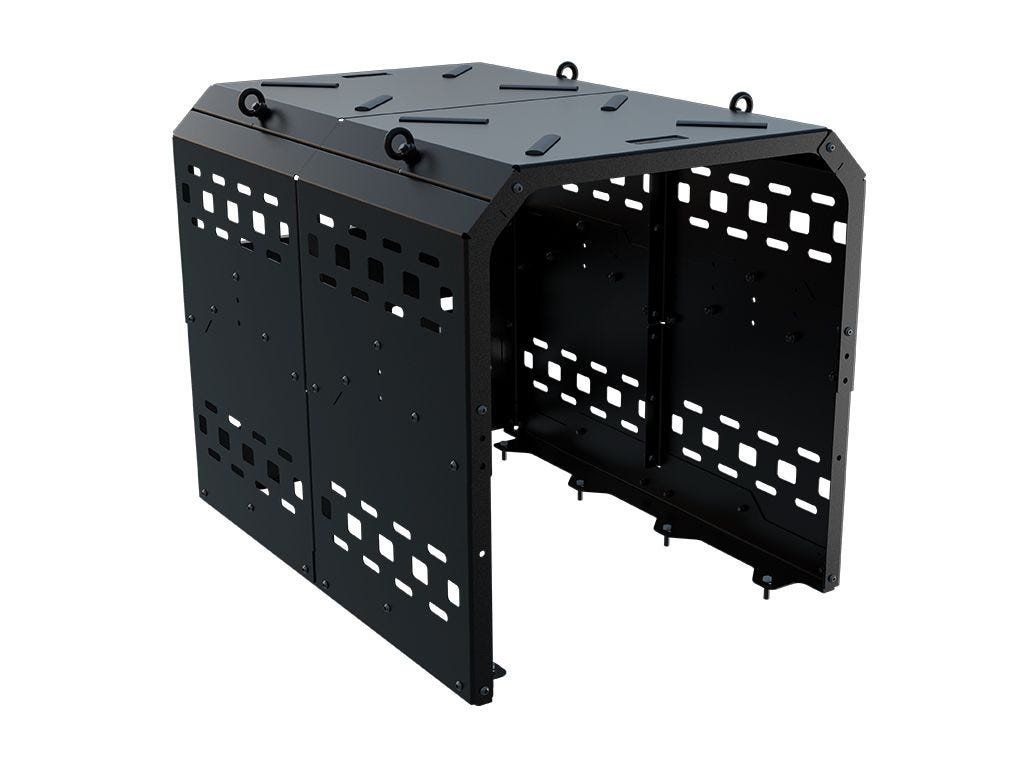 Boční panely jsou navrženy se vzorem Molle, takže na ně lze přímo upevnit menší vybavení a příslušenství. Koš tak neslouží jen k ochraně lednice, ale pomáhá i s přehlednější organizací výbavy v nákladovém prostoru.