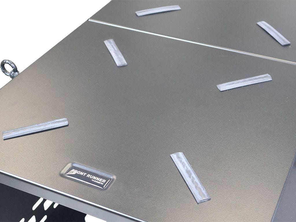 Koš je vyroben z pevnostní oceli a opatřen odolnou černou práškovou povrchovou úpravou, která odpovídá provedení nosičů Front Runner Dometic. Konstrukce je navržena pro pravidelné používání při cestování i v náročnějších podmínkách.