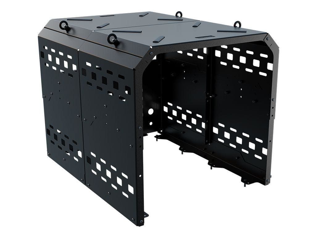 Boční panely jsou navrženy se vzorem Molle, takže na ně lze přímo upevnit menší vybavení a příslušenství. Koš tak neslouží jen k ochraně lednice, ale pomáhá i s přehlednější organizací výbavy v nákladovém prostoru.