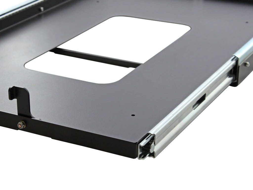 Výsuv usnadňuje manipulaci s lednicí i těžším nákladem a přitom zabírá minimum místa. Je vhodný pro montáž na jakýkoliv rovný povrch, včetně zásuvkových systémů Front Runner, vestaveb nebo ložné plochy pick-upu.