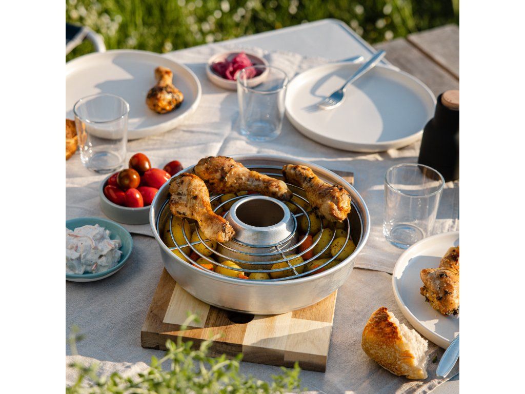 Chytrý doplněk, který vám umožní připravit dvě jídla najednou. Umístěte jednu ingredienci do spodní části formy a druhou na horní rošt – ušetříte čas, plyn i nádobí. Skvělá volba pro rychlé a chutné vaření na cestách.