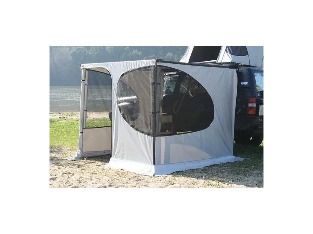Tato sada tří bočních stěn je volitelné příslušenství k boční markýze James Baroud. Stěny mají velká okna a dveře a vytváří uzavřený prostor, který výrazně zlepší komfort při větru, dešti i při kempování na místech, kde oceníte soukromí.