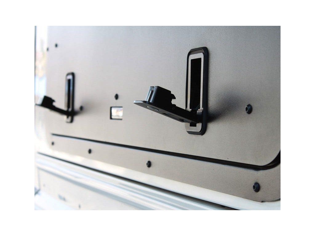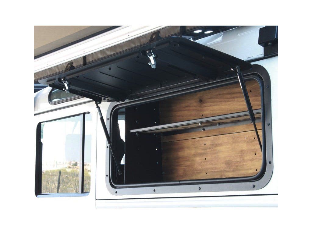 Výklopné okno Gullwing Front Runner nahrazuje zadní boční okno vozu Land Rover Defender a umožňuje snadný přístup do nákladového prostoru z boční strany vozidla.