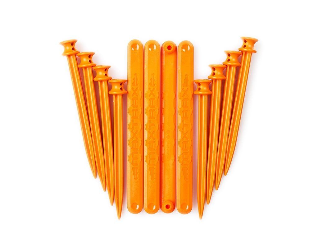 Sada je vyrobená ze zesíleného nylonu – stejného materiálu, jaký se používá u desek MAXTRAX. V balení najdete 4 kolíky a 4 popruhy pro rychlé a jednoduché použití.