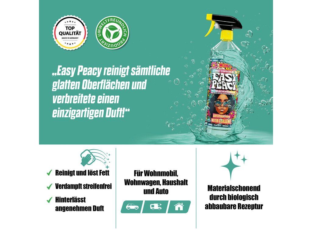 More flower, more power! Easy Peacy od Woshup je univerzální čistič, který zvládne rychlý i důkladný úklid všude tam, kde se žije a cestuje – v camperu/karavanu, doma v kuchyni, ve sdíleném ubytování nebo klidně i na festivalu. Už žádný chaos specializovaných přípravků: Easy Peacy šetří místo, čas i peníze.