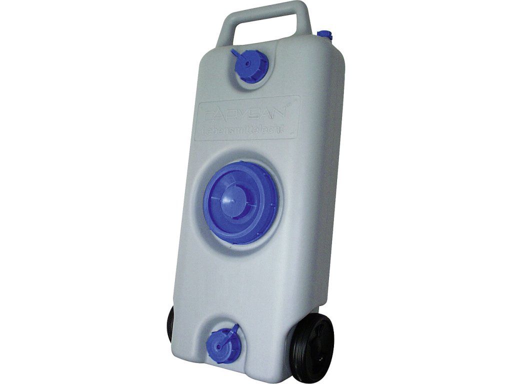 Aquamobil 35 l je praktická pojízdná nádrž na čistou vodu, která se hodí pro karavan, obytný vůz i kempování. Díky velkým kolečkům se s ní snadno manipuluje i při plném objemu, takže vodu pohodlně převezete z místa plnění až k vozidlu bez zbytečné námahy.