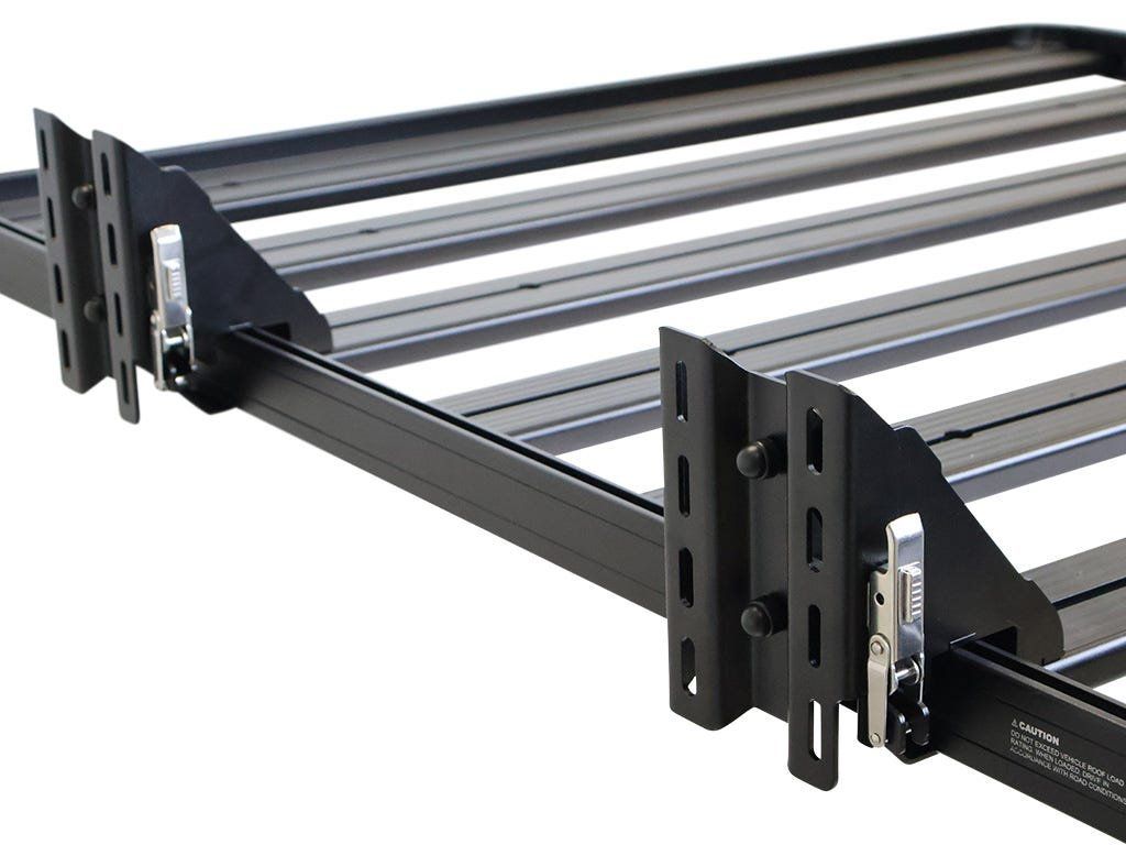 Dva (2) základní držáky se přišroubují na boční profil vašeho nosiče Front Runner Slimline II, zatímco samonaváděcí pouzdra se připevní ke spodní straně markýzy.