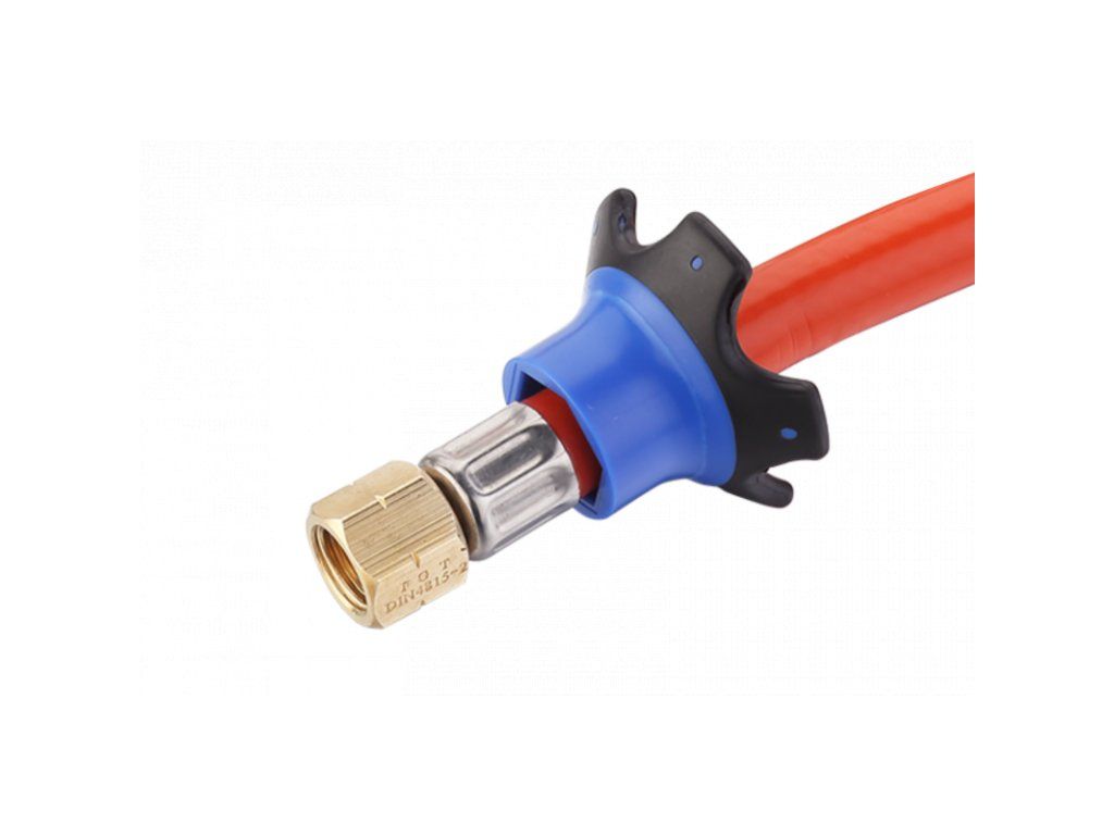 Typ plynové hadice a regulátoru závisí na zvoleném zdroji plynu (kartuše nebo plynová láhev). Pro kartuše EN417 je vhodný právě tento regulátor s integrovanou hadicí.
