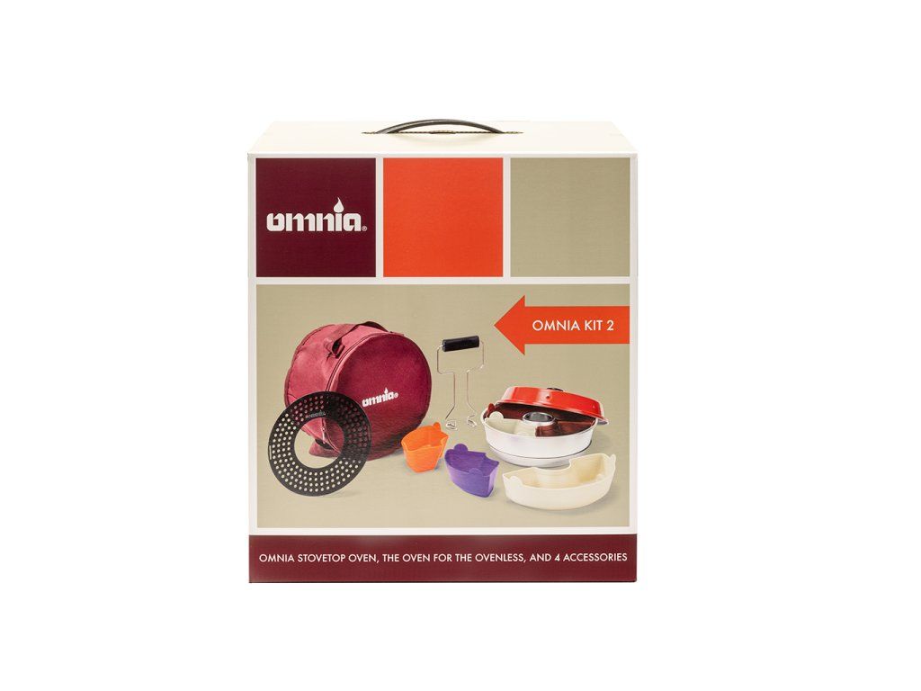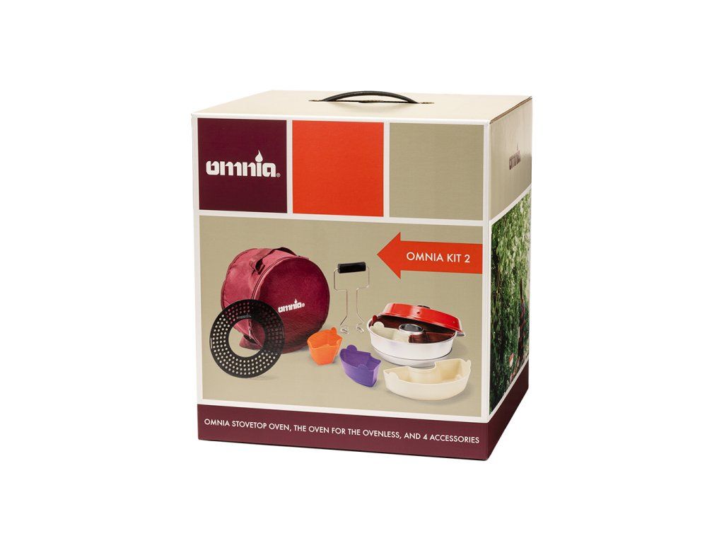 Omnia Kit 2 je ideální startovací sada pro všechny, kteří chtějí začít vařit a péct i mimo domov. V praktickém balení najdete přenosnou troubu Omnia® Classic Original 2L a čtyři nejoblíbenější doplňky, které rozšiřují možnosti přípravy jídla na maximum. Vhodné pro vaření na plynovém vařiči, ideální pro karavanisty, kempaře nebo milovníky outdooru.