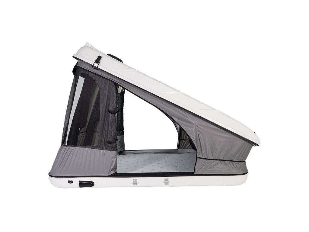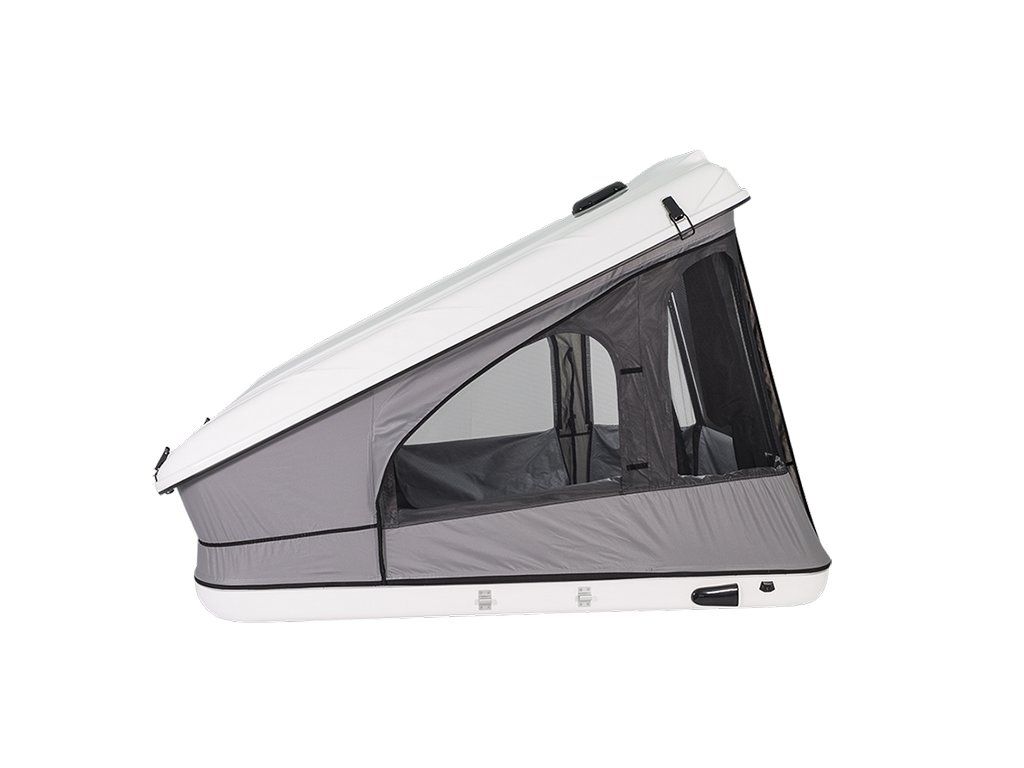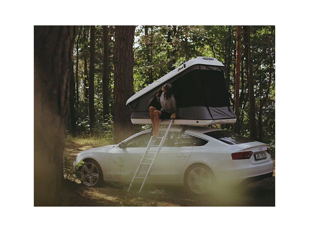 Střešní stan James Baroud je vyroben ze 3 vrstev zesíleného sklolaminátu a potažen UV-odolným gelovým nátěrem. Právě tato kombinace zajišťuje mimořádnou odolnost a dlouhou životnost i v těch nejnáročnějších povětrnostních podmínkách.