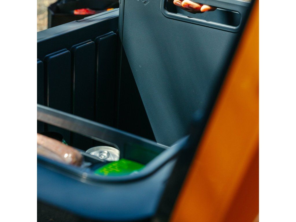 Přepážka se zasouvá do vnitřních drážek chladicího boxu, takže drží pevně a sedí přesně. Pro rychlé vyjmutí slouží horní madlo. Velkou výhodou je i to, že přepážka může posloužit jako krájecí prkénko – získáte tak praktickou plochu pro přípravu jídla na cestách.