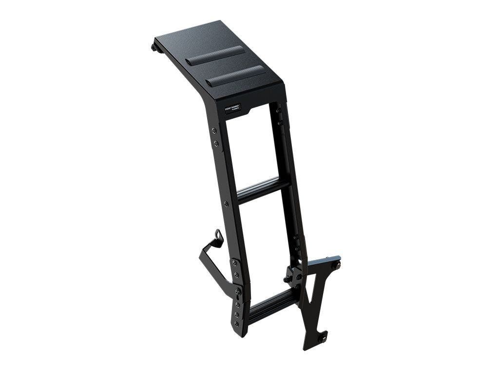 Praktický 3stupňový žebřík pro Toyota FJ Cruiser usnadní přístup ke střešnímu nosiči, boxu, sportovní výbavě nebo nákladu na racku. Konstrukce je navržena tak, aby se instalovala bez vrtání a bez úprav vozu – horní část se zahákne přes horní hranu zadních dveří a žebřík se fixuje do originálních montážních bodů držáku rezervního kola.